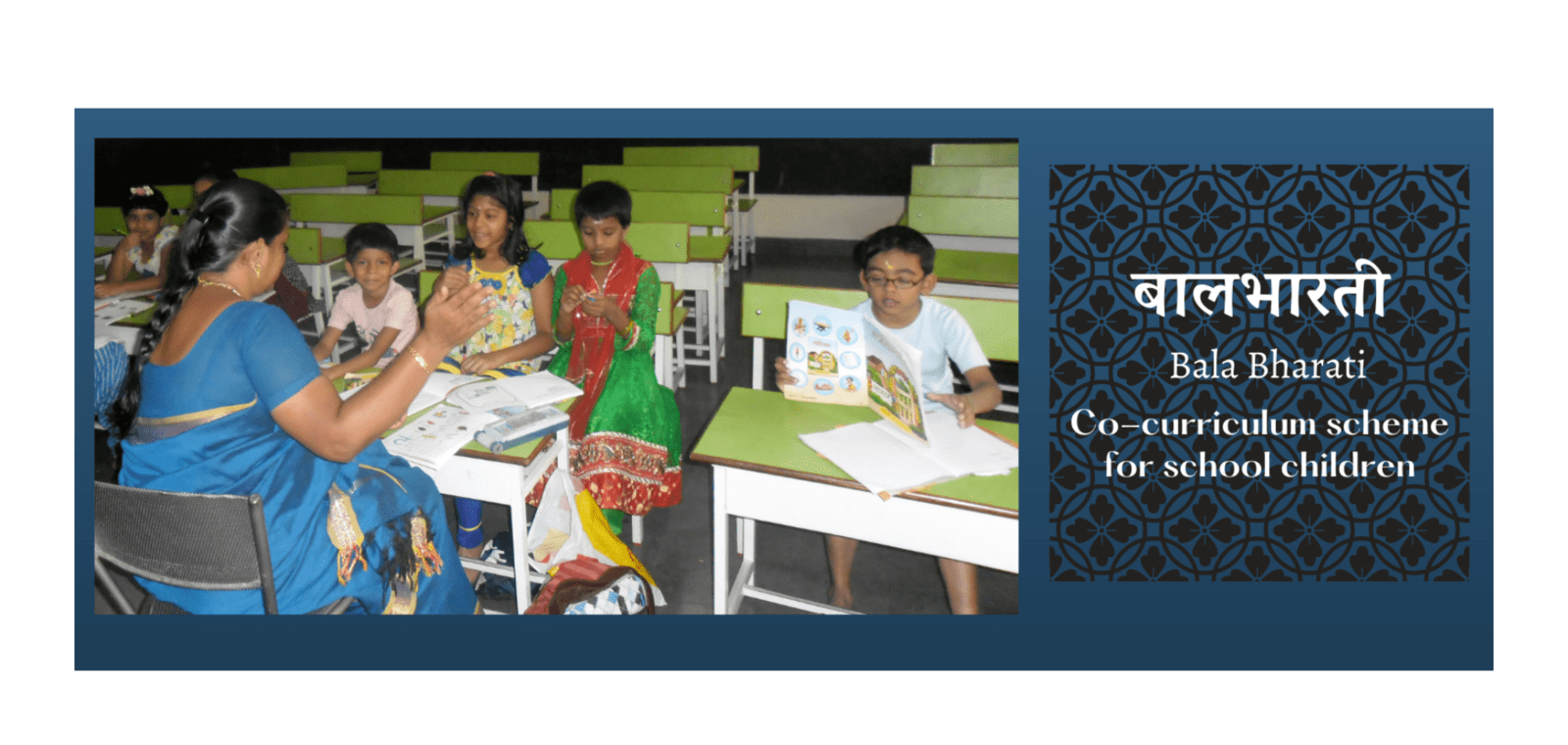 Bala Bharati, an ambitious project of Samskrita Bharati. An innovative scheme to bring Samskritam to schools. This scheme helps the students to study the basics of Samskritam outside the regular syllabus. This will be in a phased manner for 6 years, starting from 3rd standard, when they reach senior classes, they are ready to learn the language more deeply.